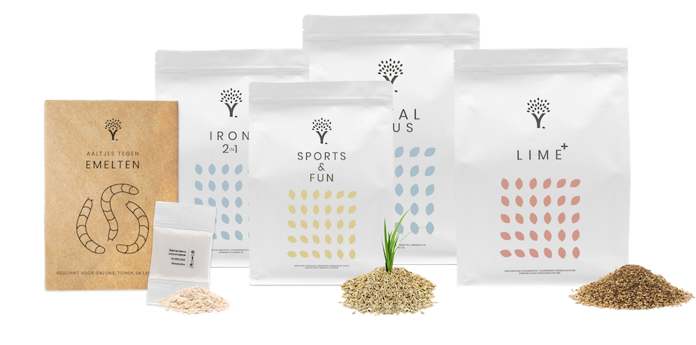 De exacte inhoud van de seizoenspakketten hangt af van het type abonnement dat je hebt gekozen. Over het algemeen bevat een pakket echter vier soorten gazonproducten: graszaad, meststoffen, bodemverbeteraars en mosbestrijdingsproducten. Kies je voor het Pro pakket, dan krijg je bescherming tegen engerlingen & emelten door middel van het gebruik van Aaltjes, een 100% natuurlijk product. Elk pakket komt ook met een duidelijk behandelplan om je te helpen bij het gebruik van de producten.